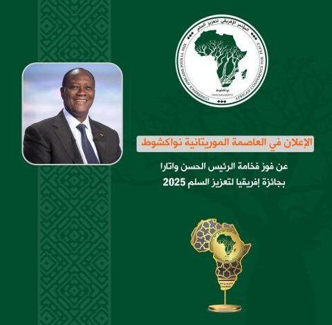 أعلن المؤتمر الإفريقي لتعزيز السلم في العاصمة الموريتانية نواكشوط عن فوز فخامة السيد الحسن واتارا، رئيس جمهورية ساحل العاج، “بجائزة إفريقيا لتعزيز السلم2025″ وسيتم تسليم هذه الجائزة الدولية الهامة رسميًا خلال الجلسة الافتتاحية للملتقى الدولي الخامس للمؤتمر الإفريقي لتعزيز السلم، الذي سيعقد بالشراكة بين الحكومة الموريتانية ومنتدى أبوظبي للسلم في العاصمة نواكشوط أيام: 21 و22 و23 يناير 2025 تحت الرعاية السامية لفخامة رئيس الجمهورية السيد محمد ولد الشيخ الغزواني. وتهدف جائزة تعزيز السلم في إفريقيا، إلى تكريم الشخصيات و المؤسسات والهيئات التي ساهمت بشكل ملحوظ في تعزيز وحفظ وصيانة السلام في إفريقيا وفي هذا السياق كرم المؤتمر الإفريقي لتعزيز السلم في الدورات السابقة لجائزة تعزيز السلم شخصيات بارزة مثل السيد محمد بازوم رئيس النيجر في دورة 2022 و السيد محمد بخاري رئيس نيجيريا في دورة2023 و السيد آداما بارو رئيس غامبيا في دورة 2024 و في دورة هذا العام 2025، قررت اللجنة العليا للجائزة بإجماع أعضائها تكريم فخامة السيد الحسن واتارا تثمينا لجهوده في تعزيز ثقافة الحوار و المصالحة في إفريقيا و اعترافا بدوره الإستثنائي في فترة قيادته للمجموعة الاقتصادية لدول غرب إفريقيا (إيكواس) في إدارة الأزمات الإقليمية، من خلال تعزيز الحوار و المصالحة و مبادرات الوساطة، هذا فضلا عن النموذج الفريد الذي أرساه للمصالحة الوطنية في ساحل العاج. و في هذا السياق أكد سعادة الشيخ المحفوظ بن بيه، المنسق العام للمؤتمر الإفريقي لتعزيز السلم” أن التزام فخامة الرئيس الحسن و تارا بالقيم الإنسانية المشتركة و دعمه الثابت للحلول السلمية في منطقة غرب إفريقيا و مساهماته الكبيرة في جهود بناء السلام في إفريقيا هو ماجعل اللجنة العليا لجائزة إفريقيا لتعزيز السلم تختاره بالإجماع في دورة الجائزة لعام 2025″.